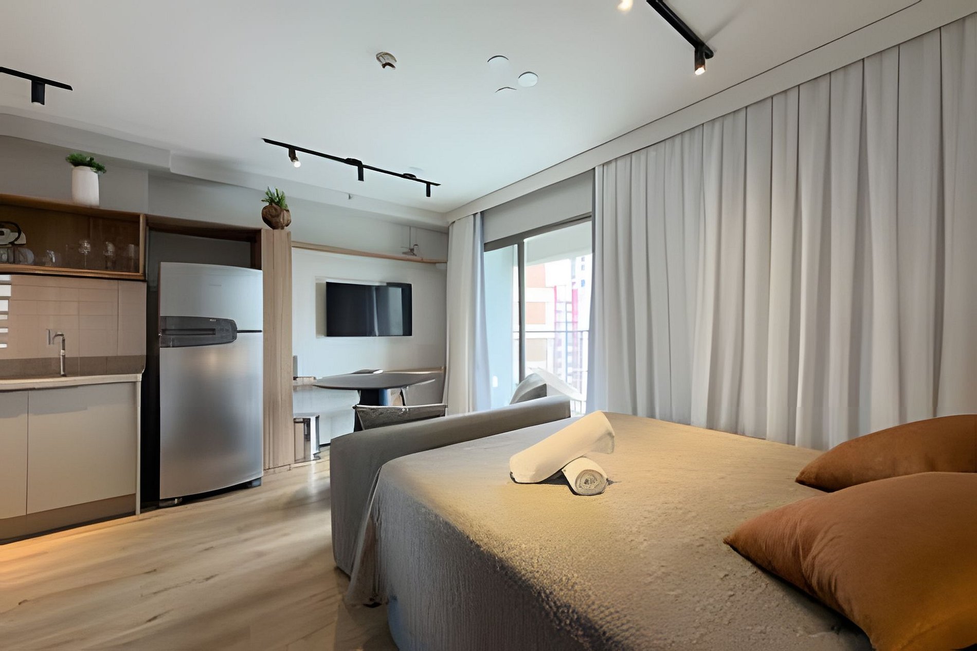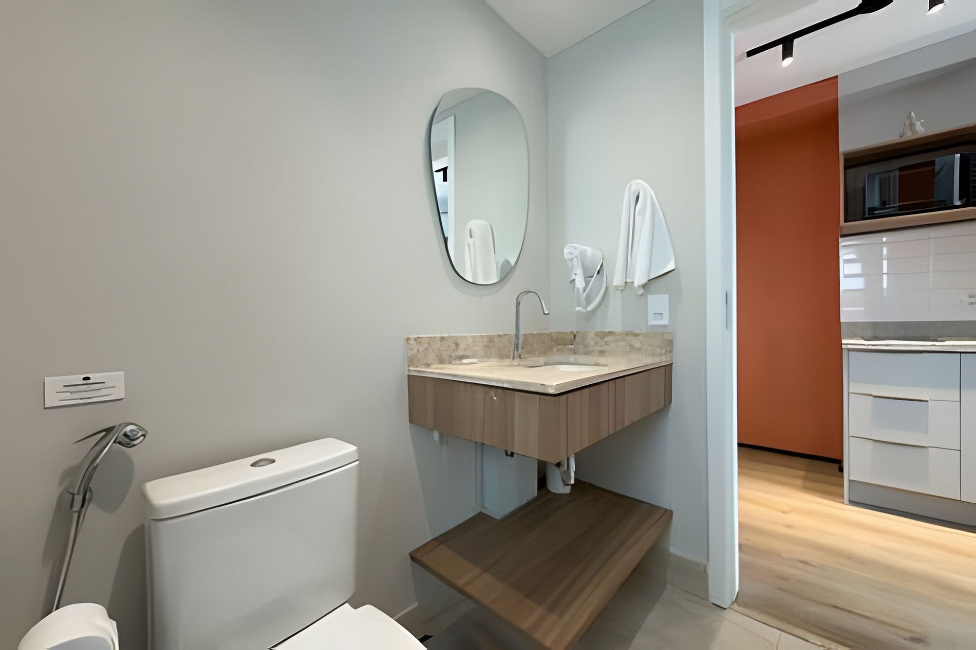 Seja bem-vindo ao seu refúgio urbano! O que torna nosso espaço especial é a harmonia entre o design moderno e o toque acolhedor de um lar. Pensamos em cada detalhe para que você tenha uma experiência de imersão, com uma iluminação planejada para relaxar após um dia de passeios ou trabalho.
