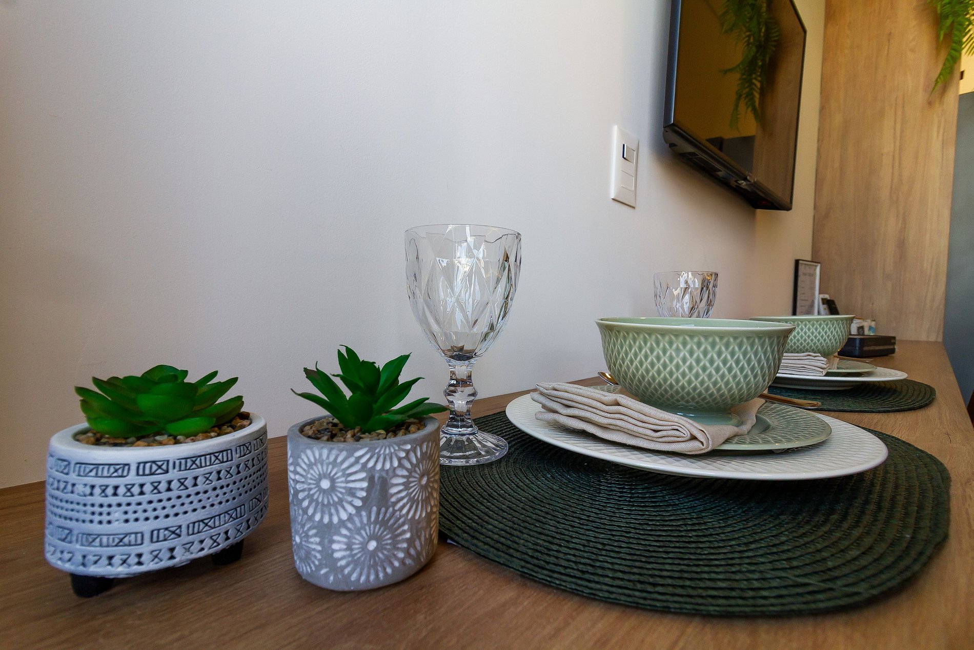 Nosso apartamento é mobiliado e decorado, criando um ambiente confortável e aconchegante. Além de uma ótima infraestrutura e localização privilegiada, você ainda conta: